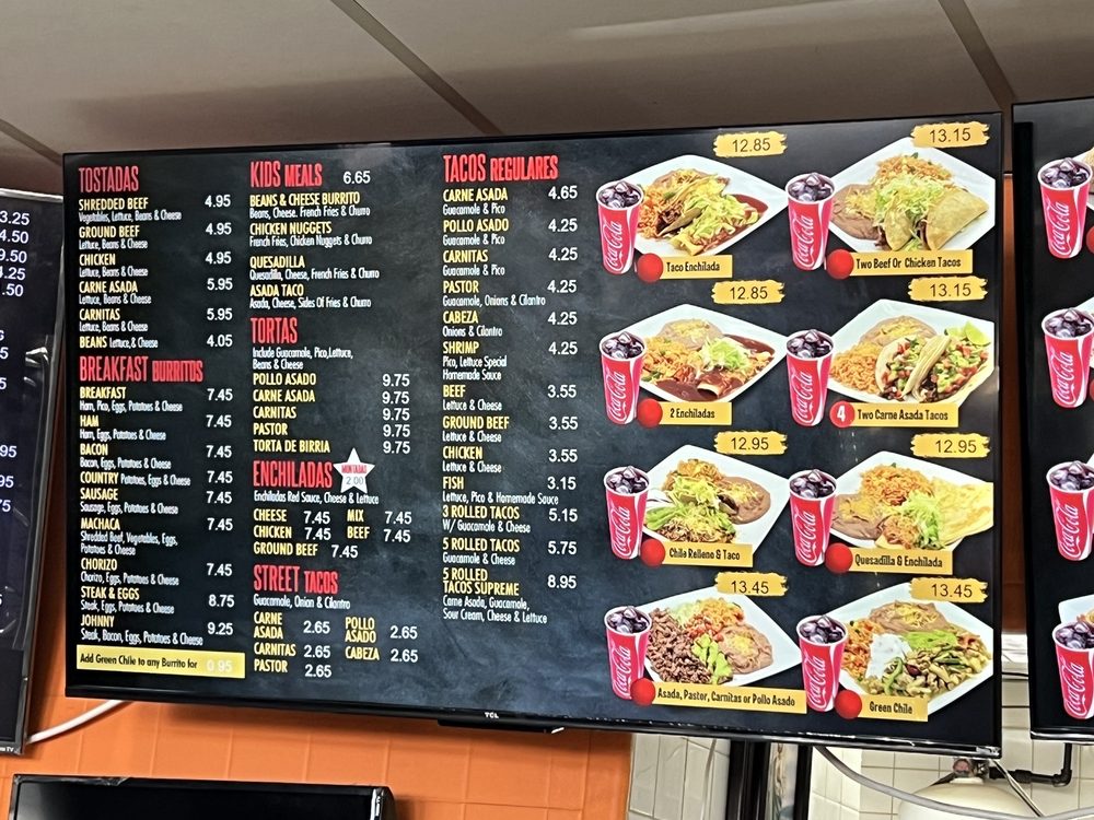 Highlights include hearty burritos, like the Carne Asada Burrito with guacamole and pico, and creative q uesadillas, such as the Mar y Tierra infused with shrimp and carne asada. Those with a sweet tooth will appreciate the variety of desserts, available for just $1.75.